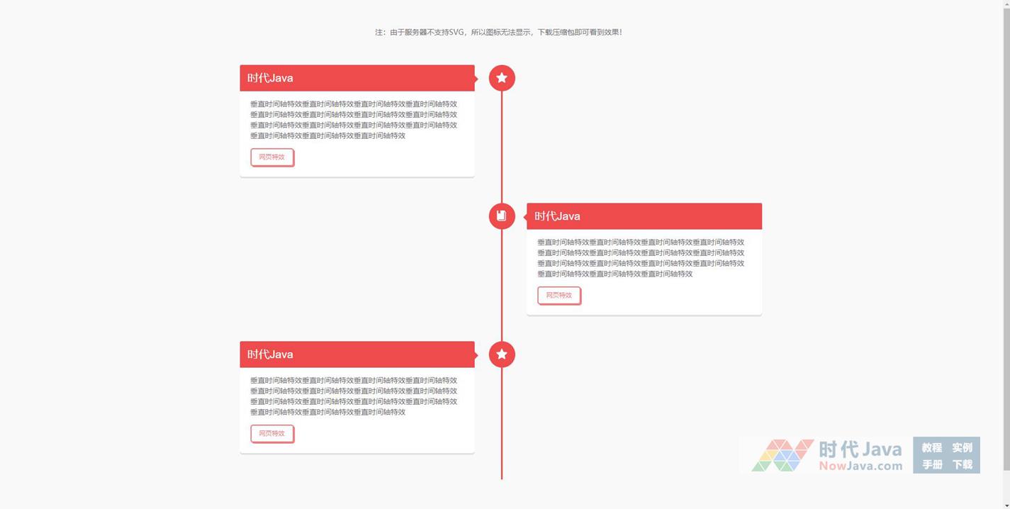 这是一款非常简单的纯CSS3实现的红色扁平风格垂直时间轴特效,CSS3网页纵向时间轴代码下载。