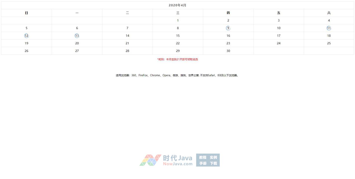 简单的jQuery+css3网页日历签到插件