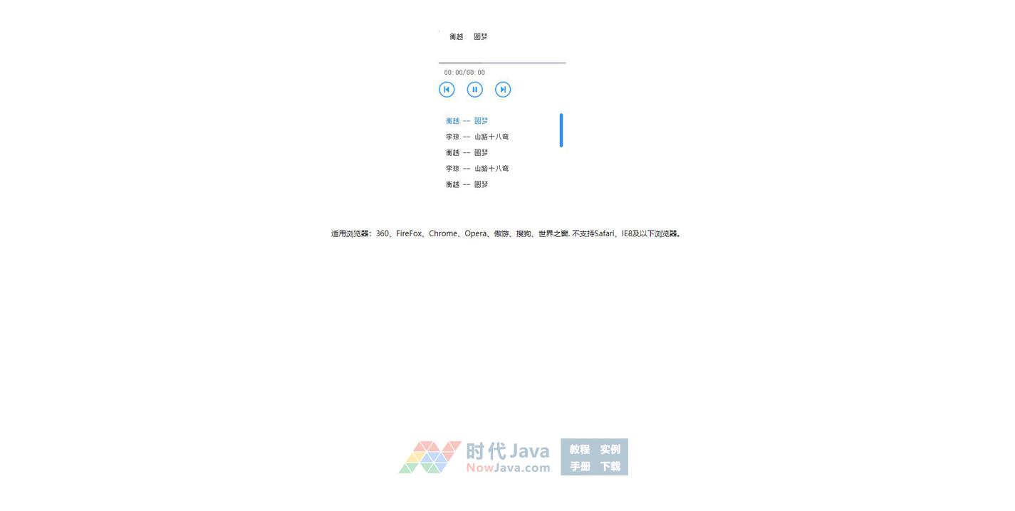 简单的js网页mp3在线音乐播放器代码,一款蓝色风格的音乐在线试听播放器,支持暂停播放、上一首下一首、歌曲列表等基本功能。