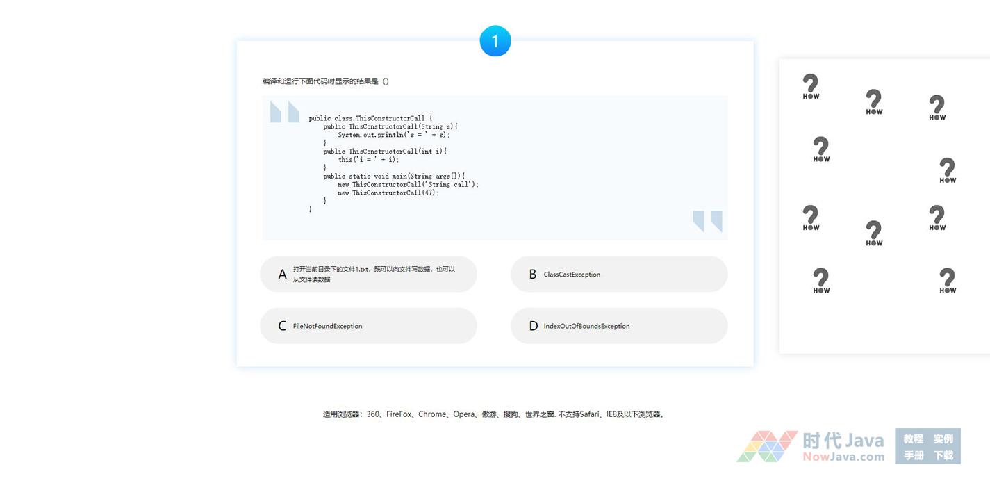 这是一款简单美观的选择题在线答题js代码,点击选择答案自动切换到下一题,还自适应浏览器宽度,非常不错。