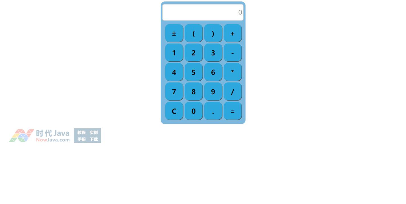 这是一款蓝色简洁的网页计算器js代码,可以进行一些基本的加减乘除运算。