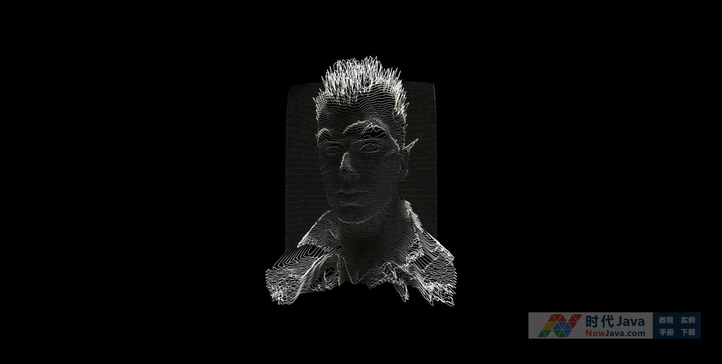 这是一款超酷HTML5 3D线条凹凸人物头像动画特效,仅仅用线条的凹凸走向,绘制出一个3D样式的人物头像,还可以随着鼠标移动而呈现不同角度的观察效果。