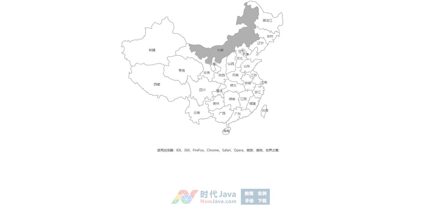 这是一款简洁实用的黑白风格中国各个省份地图分部jQuery代码,点击省份名称会有闪动特效。