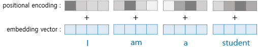 计算产生的位置编码是一个与元素具有相同维度的向量,使用相加的方式将位置信息叠加进元素中,如图 11 所示。在 Transformer 论文中没有解释为什么使用相加方式,直观感觉相加操作会造成对元素向量的污染,而串联(concatenate)就不会有这种问题。实验显示在高维中随机选择的向量几乎总是近似正交的,也就是说元素向量和位置编码向量是相互独立的。因此尽管进行了矢量相加,但两个向量仍可以通过一些变换而彼此独立地进行操作。也是正因为这种向量正交关系,串联并不会比相加表现得更好,但会大大增加学习参数方面的成本。
