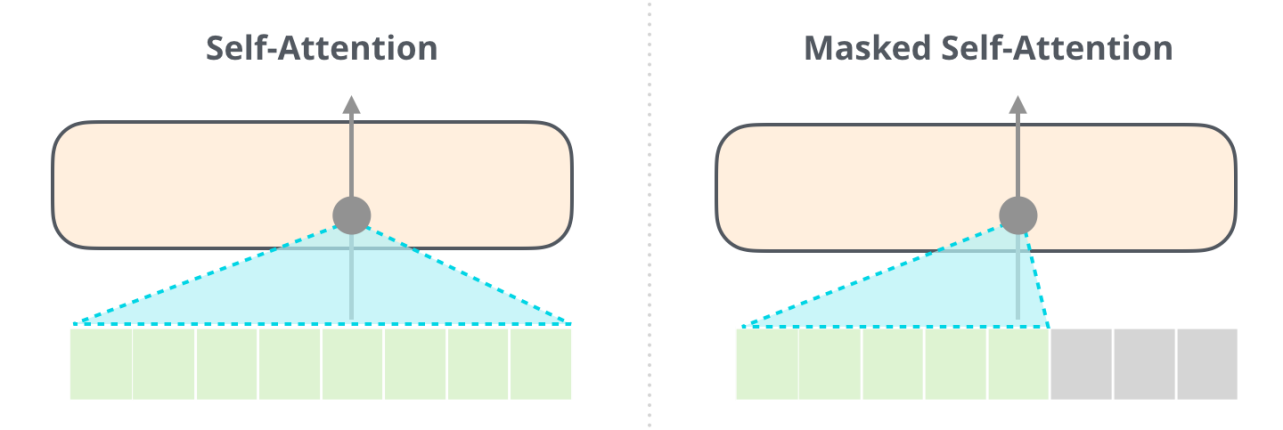 由于注意力机制可以直接看到所有的元素,因此需要一种手段来防止注意力机制处理"不应该被看到的元素",这是指在模型训练阶段不能让解码器的自注意力机制看到训练数据中当前时间点之后的正确预测值,否则模型就会利用标准答案"作弊",如图 9 所示。
