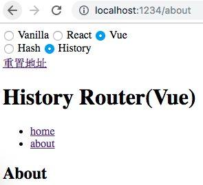 <body> <ul> <li><a href='/home'>home</a></li> <li><a href='/about'>about</a></li> <div id="routeView"></div> </ul> </body>