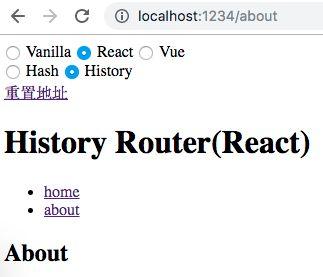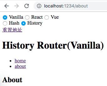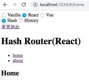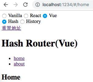 pushState/replaceState或标签改变 URL 不会触发 popstate 事件。好在我们可以拦截 pushState/replaceState的调用和标签的点击事件来检测 URL 变化,所以监听 URL 变化可以实现,只是没有 hashchange 那么方便。基于上节讨论的两种实现方式,分别实现 hash 版本和 history 版本的路由,示例使用原生 HTML/JS 实现,不依赖任何框架。