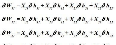 在全连接层中,反向传播与任何常规人工神经网络完全相同,在反向传播中(使用梯度下降作为优化算法),使用损失函数的偏导数即损失函数关于权重的导数来更新参数,其中我们将损失函数的导数与激活输出相乘,激活输出的导数与非激活输出相乘,导数为未激活的输出与权重相对应。 数学表达式如下: