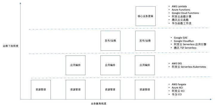 在一定规模的公司中,若严格区分开发和运维的角色,这种计算形态其实是已经存在的,并非全新的事物。但目前的技术趋势,是期望借助云的规模和技术红利优势,通过上云来降低业务在技术侧的成本,并通过技术红利反哺业务。故业界对于 Serverless 的讨论,注意力是集中在云上的服务和产品所体现的 Serverless 能力。