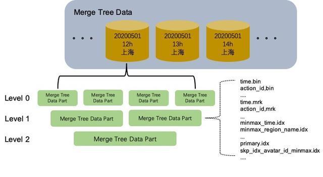 PRIMARY KEY (action_id, scene_id, time_ts, level);该表的MergeTree存储结构逻辑示意图如下:
