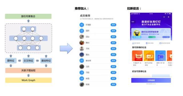 拉新促活。邀请好友是App产品常用的一种拉新、促活方式。通过激励用户邀请好友、创建组织,可以为钉钉带来新用户、曝光度、留存率、活跃度,甚至形成裂变。我们基于DingTalk