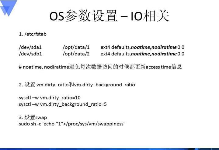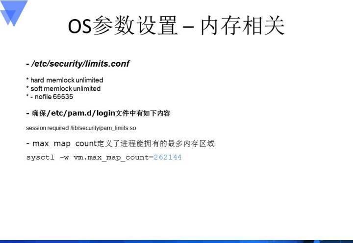 下面要讲的设置就非常具体了,从三个层面来讲:第一个有关Linux的系统配置,第二是集群层面的参数设置,最后会涉及到存储到集群上的索引设置。