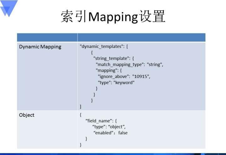 下面一栏对应特别特别大的字段,如果我们只是存储这个字段的内容,不对这个字段做搜索也不做任何分词,可以将类型设置为object,enabled设置为false,即便包含嵌套信息也不会被解析。