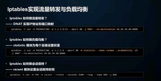 我们知道,Iptables 做防火墙是专业的,那么它是如何做流量转发、负载均衡甚至会话保持的呢?如下图所示: