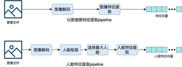 OpenAnalytic是AnalyticDB上的非结构化分析工具, OpenAnalytic 提供了丰富的图像, 视频, 文本分析的AI算法算子, 如人脸检测, 人脸识别, 人脸性别,年龄识别, 商品属性识别, 图像目标检测, 声纹识别, 文本特征提取等. 用户可以根据实际需求来任意的使用这些AI算子来自由的编排自己的算法pipeline. 例如, 本问中使用的图像特征提取pipeline和人脸特征提取pipeline如下图所示. 用户只需要通过pipeline_create UDF创建pipeline, 就可以在AnalyticDB集群上分布式的运行这些已创建的pipeline获取非结构化数据分析的结果.