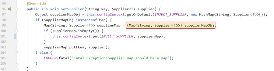 这种强转都是因为类型链条断掉了,写入的时候擦除了类型,读出来的时候也就只能强转了,那个instanceof 其实并没有帮到什么忙,无外乎把A异常变成了B异常。