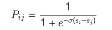 使用交叉熵损失函数,令表示样本对的真实标记,当比更相关时(即为正例而为负例),为1,否则为-1,损失函数可以表示为: