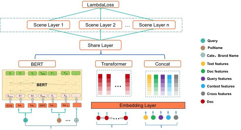 损失函数:搜索业务更关心排在页面头部结果的好坏,将更相关的结果排到头部,用户会获得更好的体验,因此选用优化NDCG的Lambda Loss[34]。