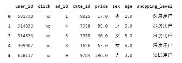 这是一份淘宝平台的广告展示/点击数据,本次分析需要从这些数据中发现某些规律或者异常,进而给运营团队提出建议。