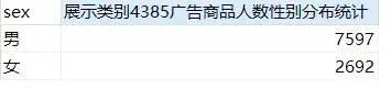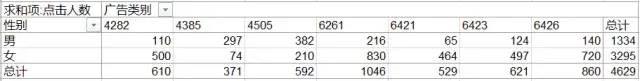 男女广告点击数的比例约为:1:1.7