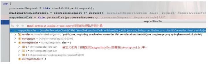 其中,第一步中"获取执行链",执行链内容可以通过debug调试查看内容: