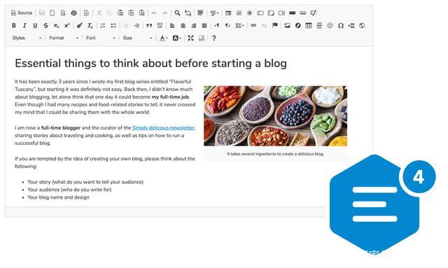 然后应在模板中添加<ckeditor />标签以创建 CKEditor 4 实例: