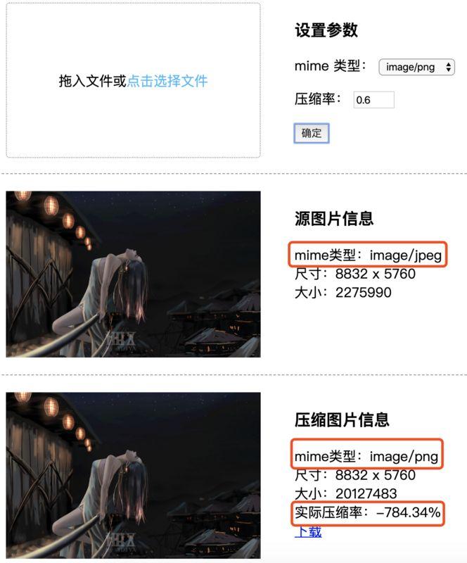 console.log('压缩率: ', (result.size / file.size * 100).toFixed(2) + '%');
