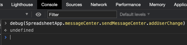 debug 函数具体是利用函数断点 debug(functionName) 和 undebug(functionName) 方法,其中 functionName 是要调试的函数。我们可以将 debug() 插入到的代码中(这个方法和 console.log() 语句相似),也可以从 DevTools 控制台中进行调用。 debug() 相当于在第一行函数中设置代码行断点。