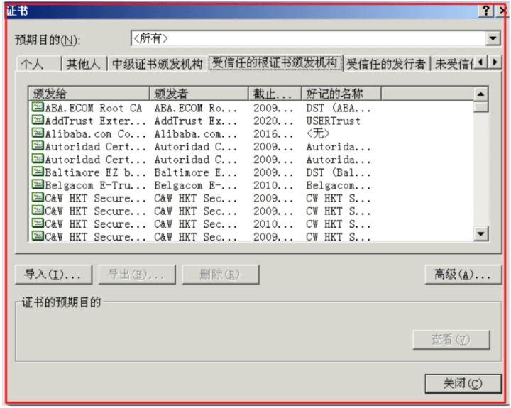 客户端(浏览器)的“证书管理器”,有“受信任的根证书颁发机构”列表。客户端会根据这张列表,查看解开数字证书的公钥是否在列表之内。