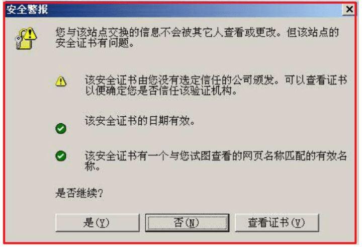 如果这张数字证书不是由受信任的机构颁发的,浏览器会发出另一种警告。