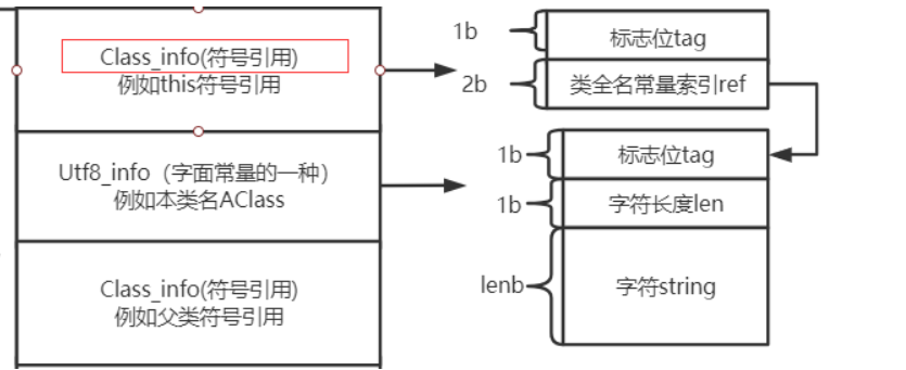 符号引用如下,不过我这展示的时class_info即类的符号引用, 实际上还会有method_info即方法的引用: