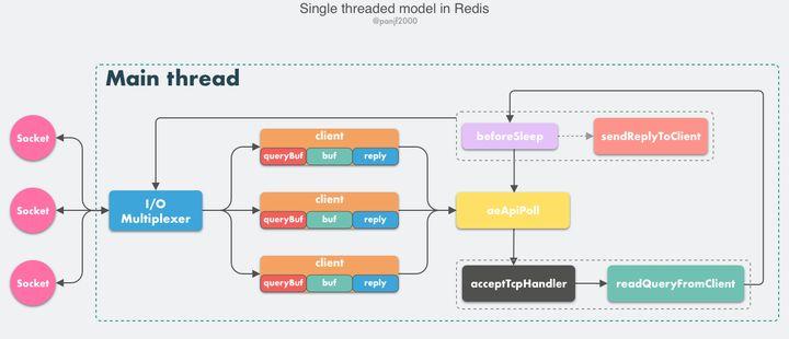以上便是 Redis 的核心网络模型,这个单线程网络模型一直到 Redis v6.0 才改造成多线程模式,但这并不意味着整个 Redis 一直都只是单线程。