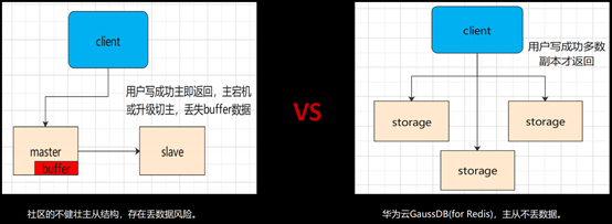 这时候,就是我们GaussDB ( for Redis )“强一致”功能出场的时候了。针对主从不一致的问题,GaussDB ( for Redis )在设计之初就是一个强一致的数据库,摒弃了开源社区的异步赋值机制。它被设计成在存储层(DFV层)去进行强一致的数据同步,而非在计算层。这样一来,在一开始便避免了任何中间态下的数据的不一致。妈妈再也不用担心我们宕机导致数据丢失啦~