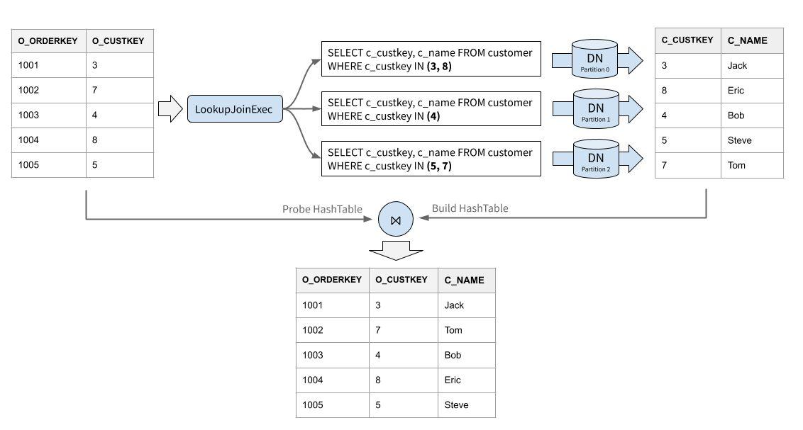 Lookup Join 的执行过程如下(非索引回表情形):