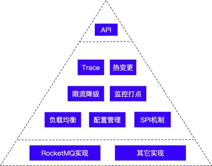上图分为3层,第二层是通用的,第三层才对应具体的MQ实现,因此,理论上可以更换为其它消息中间件,而客户端程序不需要修改。