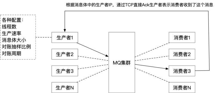 消费者收到了消息会通过TCP旁路Ack生产者,生产者这边会做分布式对账,将对账结果打点: