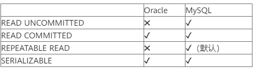 同时不同的数据库对不同隔离级别也是有不同的支持程度,就拿MySQL和Oracle为例: