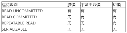但是这些个隔离级别并不是都能解决上面所有的并发问题的,他们解决并发问题的能力如下: