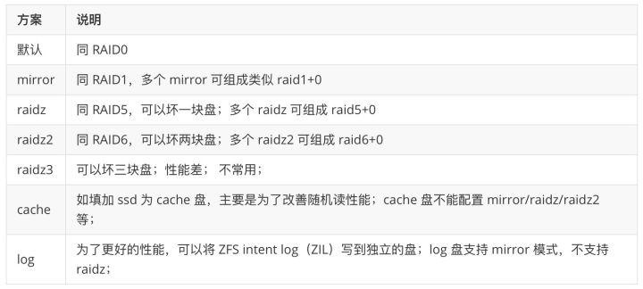 ada6 ONLINE 0 0 0除了 raidz 还支持其他方案: