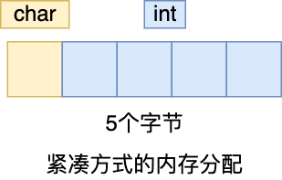 }这时打印的结果是 5(1 个字节 char + 4 字节 int)。