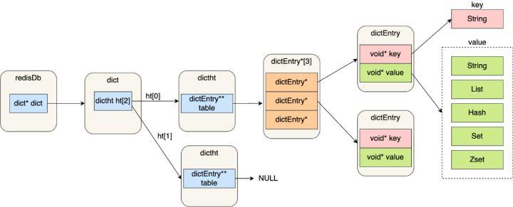 我画了一张 Redis 键值对数据库的全景图,你就能清晰知道 Redis 对象和数据结构的关系了: