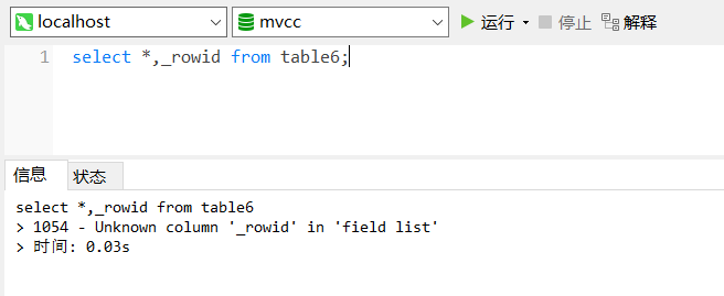 ) ENGINE=InnoDB;执行查询语句,在这种情况下,无法显式地查询到_rowid: