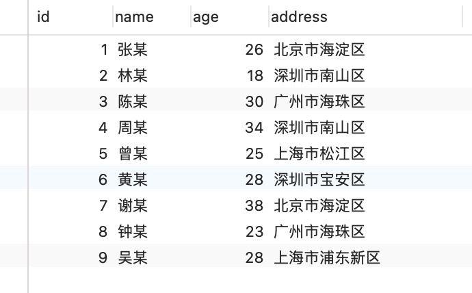 这里有一张 t_user 表,其中 id 字段为主键索引,其他都是普通字段。