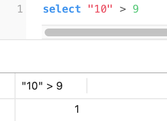 我在看《mysql45讲的时候》看到一个简单的测试方式,就是通过 select “10” > 9 的结果来知道MySQL 的数据类型转换规则是什么: