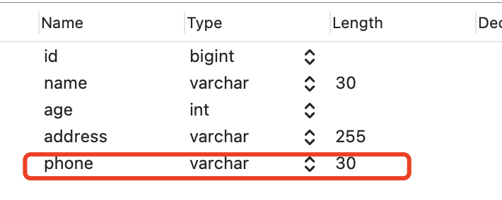 我在原本的 t_user 表增加了 phone 字段,是二级索引且类型是 varchar。
