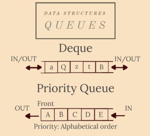 一种特殊且非常重要的队列类型是优先级队列。元素根据与它们关联的“优先级”被引入队列:具有最高优先级的元素首先被引入队列。这个 ADT 在许多图算法(Dijkstra 算法、BFS、Prim 算法、霍夫曼编码 - 更多关于它们的信息)中是必不可少的。它是使用堆实现的。