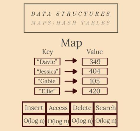 因为maps 是使用自平衡红黑树实现的(文章后面会解释),所以所有操作都在 O(log n) 内完成;所有哈希表操作都是常量。