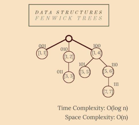 fenwick 树,也称为二叉索引树 (BIT),是一种也用于高效更新和查询的数据结构。与 Segment Trees 相比,BITs 需要更少的空间并且更容易实现。