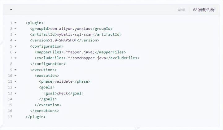 在工程中引入我们开发并部署好的插件com.aliyun.yunxiao:mybatis-sql-scan。