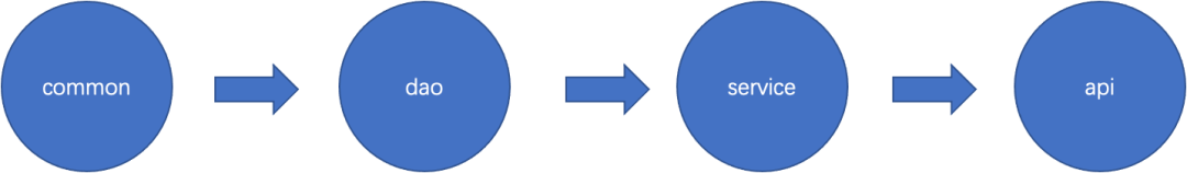 工程内各个module之间的依赖关系如下,通常这也是标准的 spring-boot restful api多模块工程的结构。